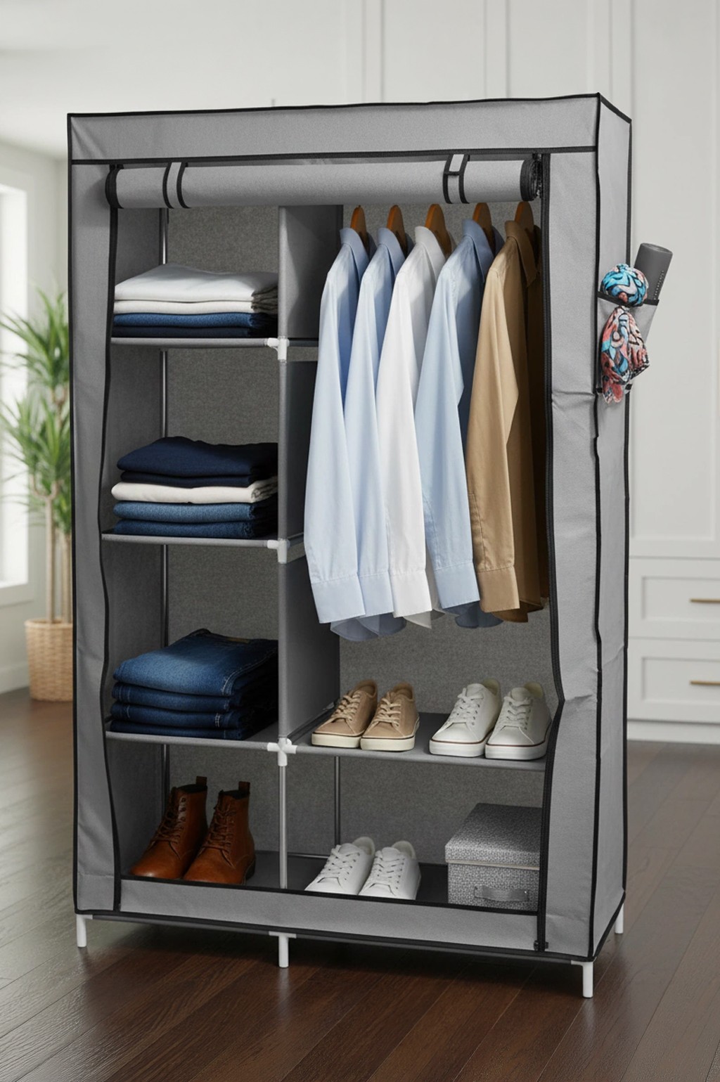 - Gran capacidad: múltiples estantes o barrales para ropa y calzado.